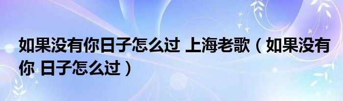 如果没有你日子怎么过 上海老歌(如果没有你 日子怎么过)