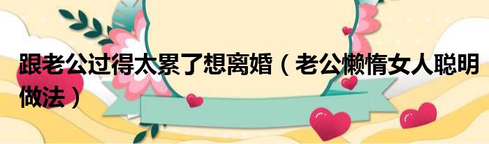 跟老公过得太累了想离婚(老公懒惰女人聪明做法)