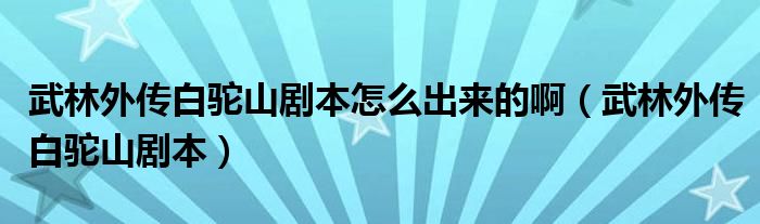 武林外传白驼山剧本怎么出来的啊(武林外传白驼山剧本)