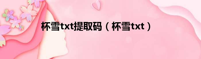 大家好,我是小五,我来为大家解答以上问题。杯雪txt提取码,杯雪txt很多人还不知道,现在让我们一起来看看吧!
