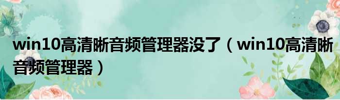 win10高清晰音频管理器没了(win10高清晰音频管理器)