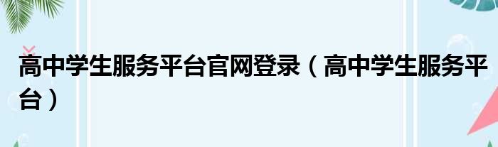 大家好,小房来为大家解答以上的问题。高中学生服务平台官网登录,高中学生服务平台这个很多人还不知道,现在让我们一起来看看吧!