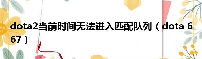 大家好,我是小五,我来为大家解答以上问题。dota2当前时间无法进入匹配队列,dota 6 67很多人还不知道,现在让我们一起来看看吧!