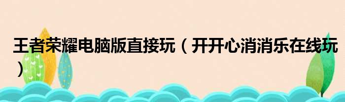 王者荣耀电脑版直接玩(开开心消消乐在线玩)