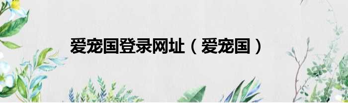 爱宠国登录网址(爱宠国)