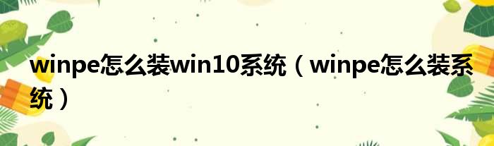 winpe怎么装win10系统(winpe怎么装系统)