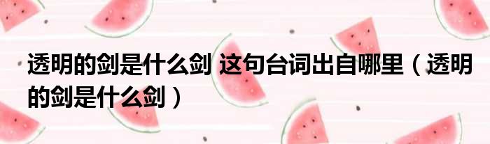 透明的剑是什么剑 这句台词出自哪里(透明的剑是什么剑)