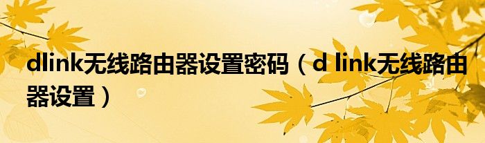 dlink无线路由器设置密码(d link无线路由器设置)