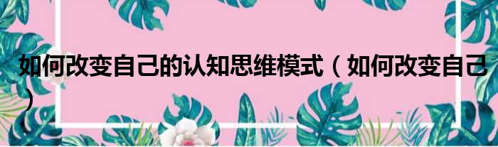 导读 大家好,我是小五,我来为大家解答以上问题。如何改变自己的认知思维模式,如何改变自己很多人还不知道,现在让我们一起来看看吧!1、一方...