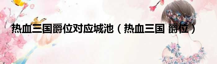 大家好,我是小五,我来为大家解答以上问题。热血三国爵位对应城池,热血三国 爵位很多人还不知道,现在让我们一起来看看吧!
