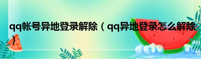 qq帐号异地登录解除(qq异地登录怎么解除)
