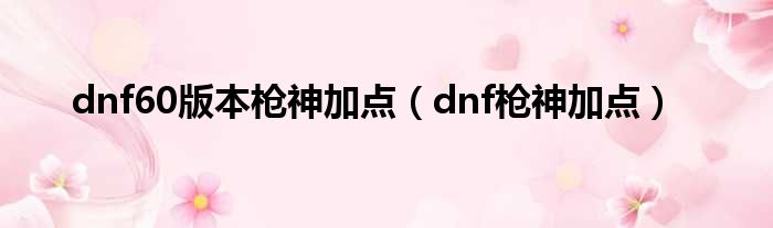 大家好,我是小五,我来为大家解答以上问题。dnf60版本枪神加点,dnf枪神加点很多人还不知道,现在让我们一起来看看吧!