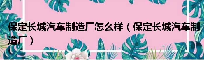 导读 大家好,我是小五,我来为大家解答以上问题。保定长城汽车制造厂怎么样,保定长城汽车制造厂很多人还不知道,现在让我们一起来看看吧!1、...