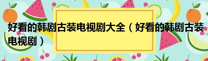 好看的韩剧古装电视剧大全(好看的韩剧古装电视剧)