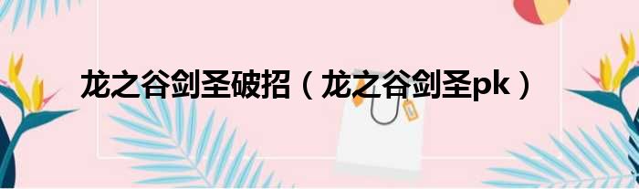 龙之谷剑圣破招(龙之谷剑圣pk)