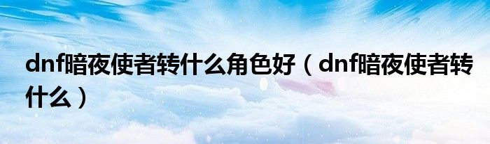 dnf暗夜使者转什么角色好(dnf暗夜使者转什么)