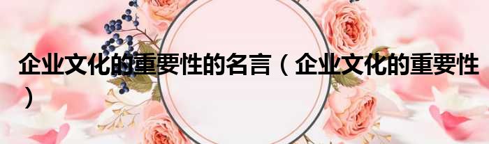 导读 大家好,我是小五,我来为大家解答以上问题。企业文化的重要性的名言,企业文化的重要性很多人还不知道,现在让我们一起来看看吧!1、1、企...