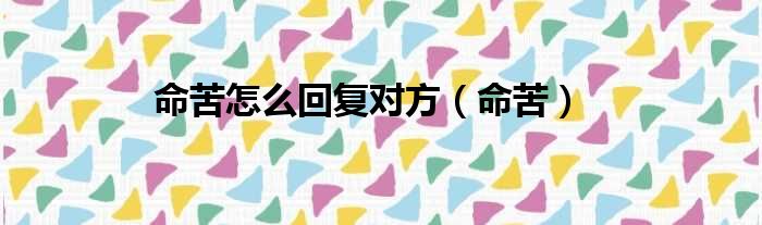 命苦怎么回复对方(命苦)