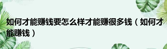如何才能赚钱要怎么样才能赚很多钱(如何才能赚钱)