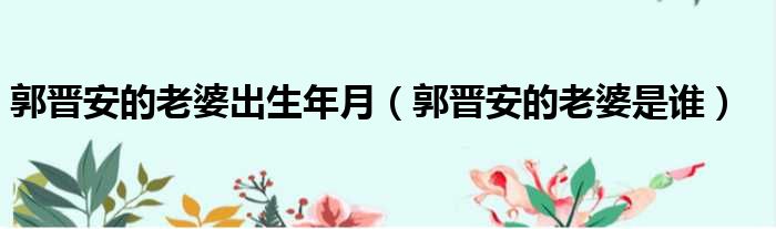 郭晋安的老婆出生年月(郭晋安的老婆是谁)