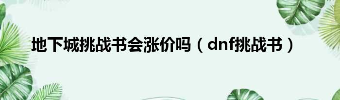 大家好,我是小五,我来为大家解答以上问题。地下城挑战书会涨价吗,dnf挑战书很多人还不知道,现在让我们一起来看看吧!