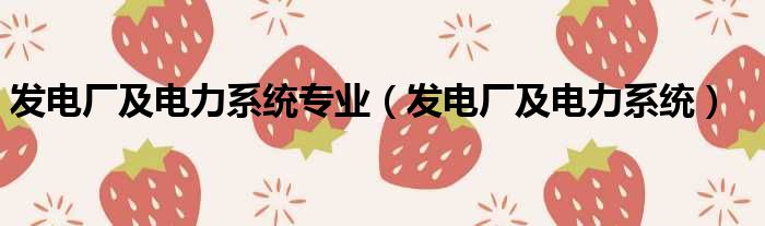 发电厂及电力系统专业(发电厂及电力系统)