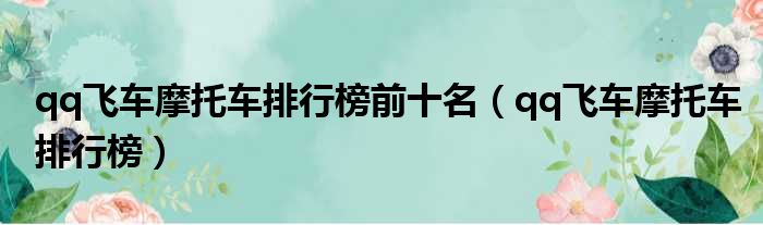 qq飞车摩托车排行榜前十名(qq飞车摩托车排行榜)