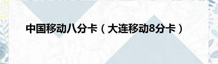 大家好,我是小五,我来为大家解答以上问题。中国移动八分卡,大连移动8分卡很多人还不知道,现在让我们一起来看看吧!