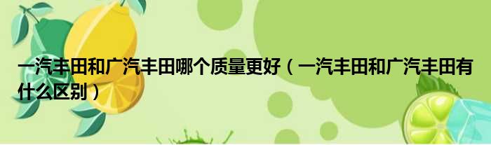 一汽丰田和广汽丰田哪个质量更好(一汽丰田和广汽丰田有什么区别)