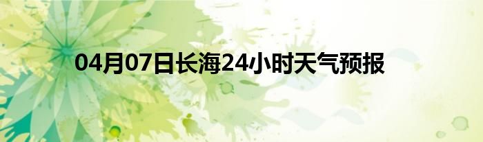 导读 holle,我是天气提前知。04月07日长海24小时天气预报不少人还不知道,现在让我们一起来看看吧!