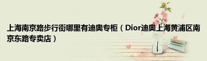 导读 大家好,源源来为大家解答以上问题。上海南京路步行街哪里有迪奥专柜,Dior迪奥上海黄浦区南京东路专卖店很多人还不知道,现在让我们一起来