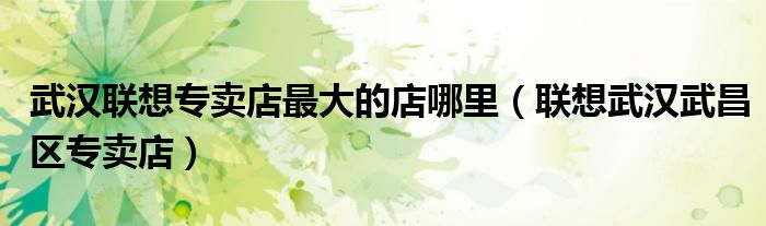 导读 大家好,源源来为大家解答以上问题。武汉联想专卖店最大的店哪里,联想武汉武昌区专卖店很多人还不知道,现在让我们一起来看看吧!联想武汉