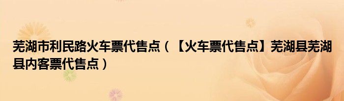 芜湖市利民路火车票代售点(【火车票代售点】芜湖县芜湖县内客票代售点)