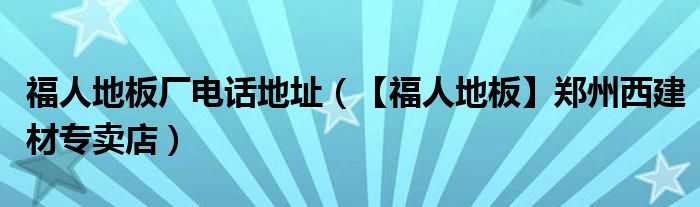 福人地板厂电话地址(【福人地板】郑州西建材专卖店)