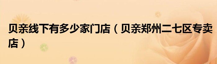 导读 大家好,源源来为大家解答以上问题。贝亲线下有多少家门店,贝亲郑州二七区专卖店很多人还不知道,现在让我们一起来看看吧!贝亲郑州二七区