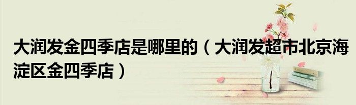 导读 大家好,源源来为大家解答以上问题。大润发金四季店是哪里的,大润发超市北京海淀区金四季店很多人还不知道,现在让我们一起来看看吧!它是