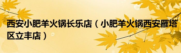 西安小肥羊火锅长乐店(小肥羊火锅西安雁塔区立丰店)