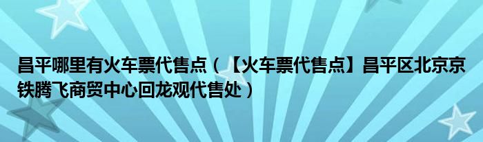 昌平哪里有火车票代售点(【火车票代售点】昌平区北京京铁腾飞商贸中心回龙观代售处)