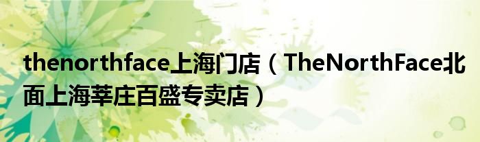 导读 大家好,源源来为大家解答以上问题。thenorthface上海门店,TheNorthFace北面上海莘庄百盛专卖店很多人还不知道,现在让我们一起来看看吧!