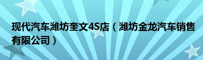 现代汽车潍坊奎文4S店(潍坊金龙汽车销售有限公司)