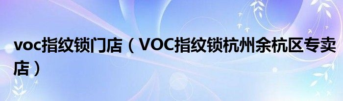 voc指纹锁门店(VOC指纹锁杭州余杭区专卖店)