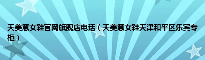 导读 大家好,源源来为大家解答以上问题。天美意女鞋官网旗舰店电话,天美意女鞋天津和平区乐宾专柜很多人还不知道,现在让我们一起来看看吧!天
