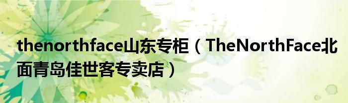 导读 大家好,源源来为大家解答以上问题。thenorthface山东专柜,TheNorthFace北面青岛佳世客专卖店很多人还不知道,现在让我们一起来看看吧!Th