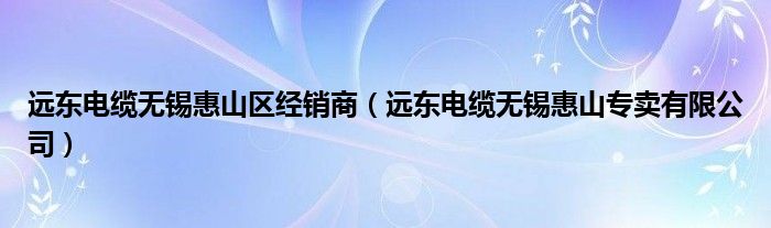 远东电缆无锡惠山区经销商(远东电缆无锡惠山专卖有限公司)
