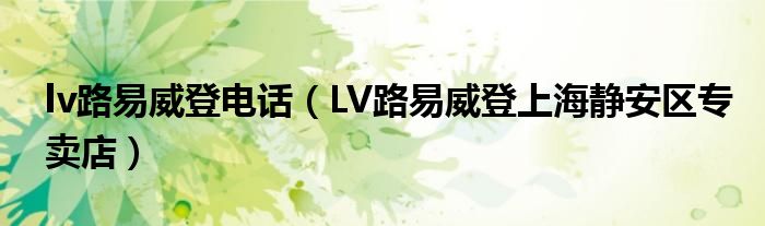 导读 大家好,源源来为大家解答以上问题。lv路易威登电话,LV路易威登上海静安区专卖店很多人还不知道,现在让我们一起来看看吧!LV路易威登上海