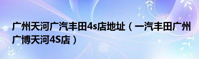 广州天河广汽丰田4s店地址(一汽丰田广州广博天河4S店)