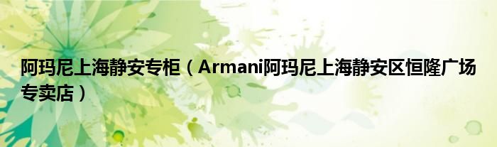 阿玛尼上海静安专柜(Armani阿玛尼上海静安区恒隆广场专卖店)