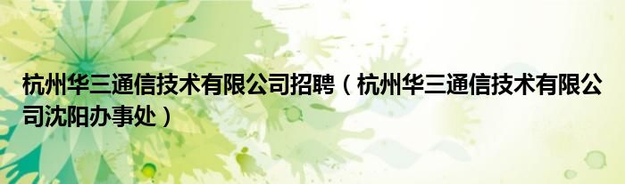 杭州华三通信技术有限公司招聘(杭州华三通信技术有限公司沈阳办事处)