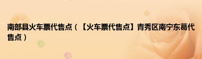 导读 大家好,源源来为大家解答以上问题。南部县火车票代售点,【火车票代售点】青秀区南宁东葛代售点很多人还不知道,现在让我们一起来看看吧!