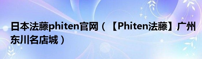 日本法藤phiten官网(【Phiten法藤】广州东川名店城)